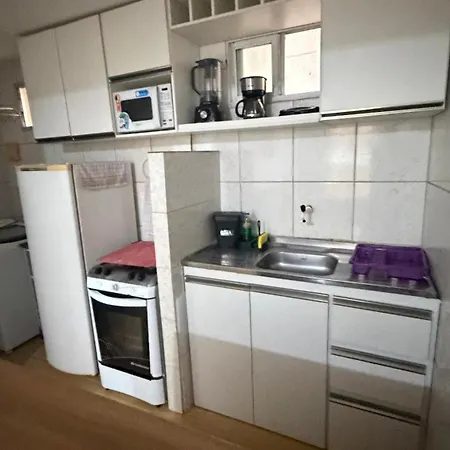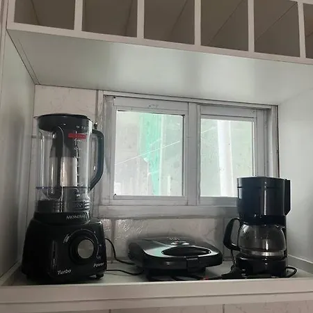 Sim, o apartamento está equipado com cozinha equipada e oferece máquina de café/chá e refrigerador.